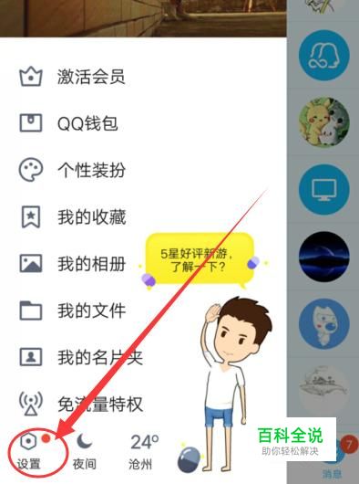 进入消息界面,点击此人QQ的头像,然后点击“设置”,进入设置界面。