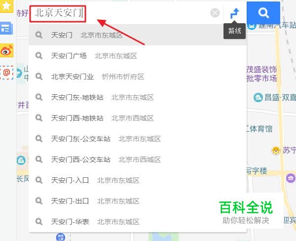 首先我们来看看电脑端的百度地图时候看全景,如下图打开百度地图以后我们在搜索框搜索自己想去的位置,比如北京天安门