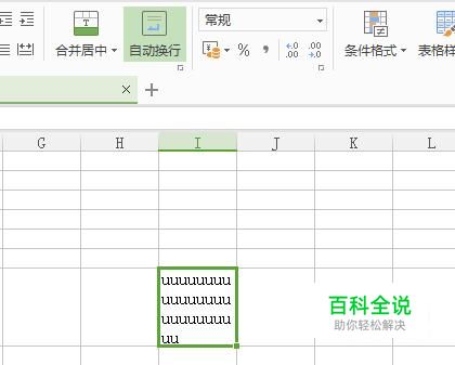 点击完自动换行后,我们发现,这一串u在单元格中被自动换行了,这个单元格也加宽了。