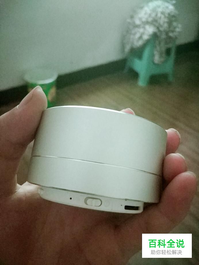 我们首先得打开蓝牙音箱的电源,一般这种蓝牙小钢炮的电源键都是在其底部,如果找不到的可以看一看说明书,把它拨到"on"上。