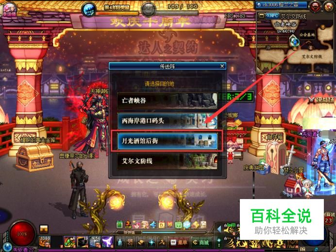 在传送选项中我们选择月光酒馆后街传送。