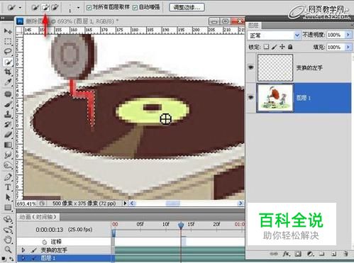 PS里打开,用“套索工具”和“仿制图章”等工具,去掉原图中的音符。然后,打开动画面板(时间轴),单击箭头所指小三角>文档设置>设定时间及帧数。这里设为2秒,每秒25帧。(图02) 图02