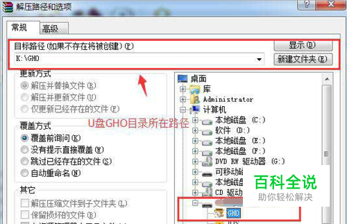 找到win7.gho文件,通过“解压到制定文件夹”然后将win7.gho文件解压到u盘内