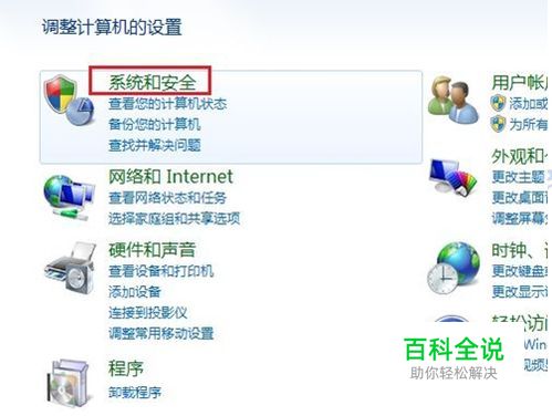 在控制面板中(以“类别”方式查看),单击选择“系统和安全”。