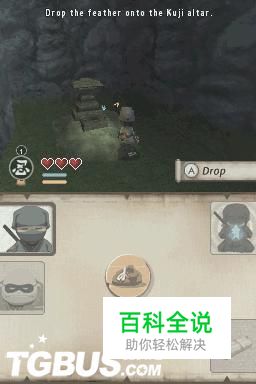 现在可以看地图了,打开下屏最右下角的地图,可以看到附近的情况,按照地图的指示去道场后面找到喜鹊,回去见大师,大师会帮我们打开道具包裹,喝掉大师给的Strong Ginseng Extract,现在有体力槽和忍术槽了,双击方向键可以加速跑,继续对话就可以通过下屏右上的图标来休息。