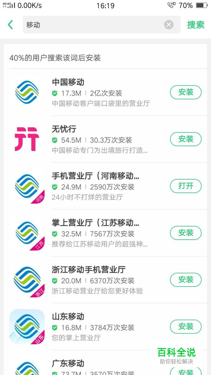 在手机软件商店中下载“移动APP”,根据省份选择相应的移动APP,我们以河南移动为例。