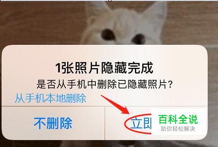 隐藏完毕以后,系统会提示我们是否将手机本地的这张原始照片删除,为了安全起见,我们点击“立即删除”就可以;