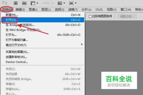 打开PS软件以后,我们首先在软件的左上角点击“文件”-“打开”,然后将我们的照片素材添加进来,下图二就是我们添加素材以后的效果图;