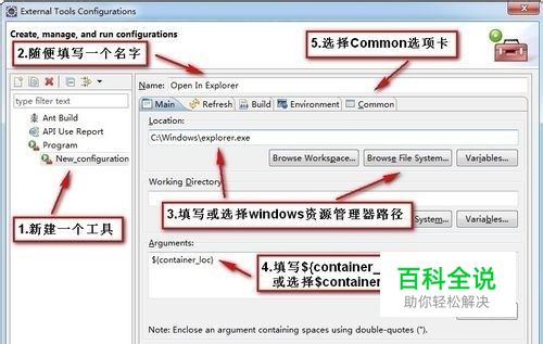 在 Arguments 中填写 ${container_loc}