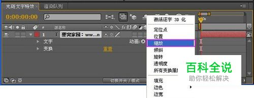 在合成组的空白处右键 — 新建 — 文字,然后在窗口上面点一下即可输入数字了,右边是文字属性,可以调节文字的字体、大小、颜色、间距等。点击文字图层下面的小三角,把文字图层的参数打开,点击文字参数后面的动画按钮,选择缩放选项。