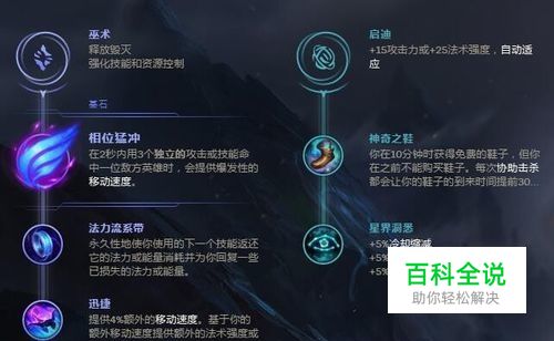 副符文孔一 神奇之靴 技能效果:前面有介绍不再赘述。 瑞兹前期需要快速做出来的成长型装备太多,无需出鞋子增强了他的装备成型能力,中期的作战能力提高。 副符文孔二 星界洞悉 技能效果:前面有介绍不再赘述。 无论是召唤师技能,英雄技能,装备的冷却,都对于瑞兹加成很大。 副符文备选 饼干配送 增加的法力能给瑞兹提高伤害但不是很多,技能前面有过介绍无需多言。
