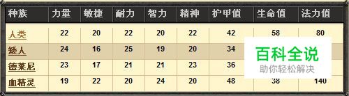 各种族出生时的属性:各种族专属技能分析:
