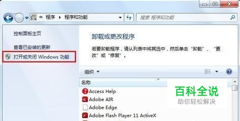 首先打开“控制面板-卸载程序”,然后点击窗口左侧的“打开或关闭Windows功能”选项。