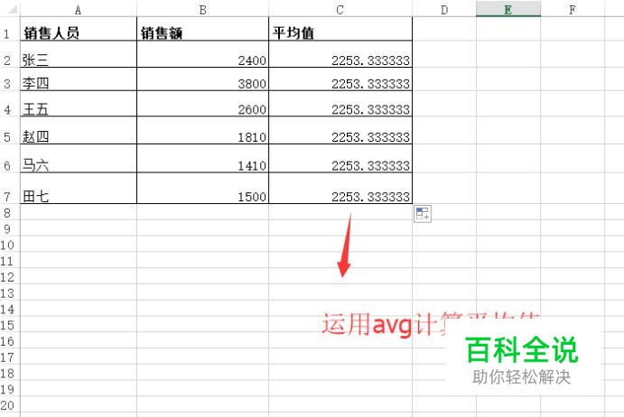 接下来我们添加平均值列,运用avg函数计算出销售额的平均值,如下图所示