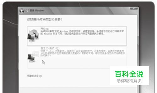 步骤二: 选择自定义安装 依据安装Windows7的方法依次向下进行,到该步骤,选择自定义安装。按照前面的操作继续进行。