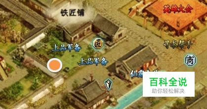 满足打造铜钱的条件: 在襄阳城中的矿石仓库中拥有铜矿石(可以通过押镖将矿石运到襄阳城中使用)。与NPC铁匠(李二虎)对话,NPC位置如图(1):