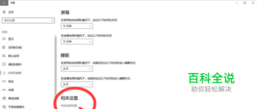 1、开始菜单打开设置:点击其他电源设置