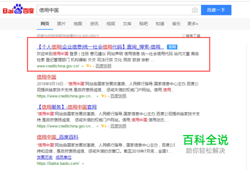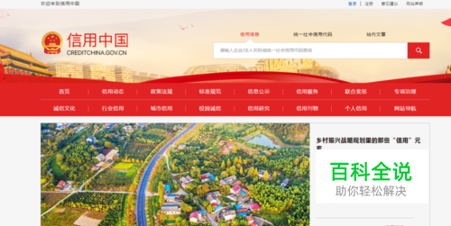 打开百度首页,搜索框输入信用中国,在搜索列表里点击官网。