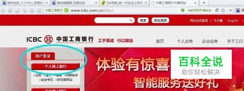 打开工行在线网页,这时请注意要工行的官方网页,不要被钓鱼网站骗了。点左边的“个人网上银行”。
