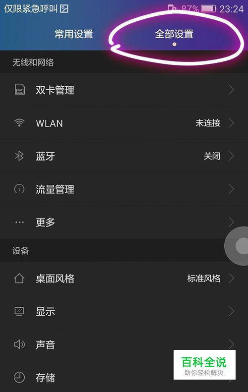 这时在手机的设置页面,我们选择全部设置页面;