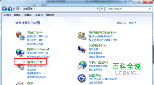 打开“ 硬件和声音”