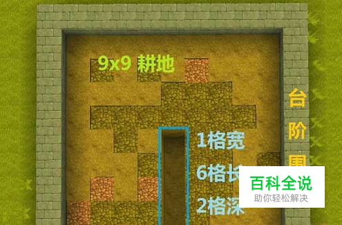 选一块9x9格的空地 边上放上台阶围栏 从中央一格向边缘挖1*6*2(深)的水渠(任意一个方向皆可)将水渠表面4格填上泥土,下方六格空出以供水流动