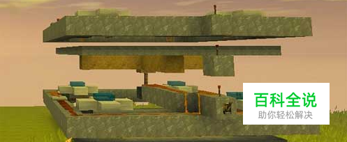 到此,第一层就已完成,如果想增加第二层,且继续向下看 由于第二层的中央也需要放水,所以我们就需要先做一个活塞来挡住从上方流下来的水 第一层放置电石火把、拉杆的石头上移一层 与拉杆同层增加四格石头做成通道,通道上放置电石粉,末端放置活塞(通电后活塞向上弹哟) 在通电后的活塞板上放置泥土(全部摆满后就是第二层小麦种植层)