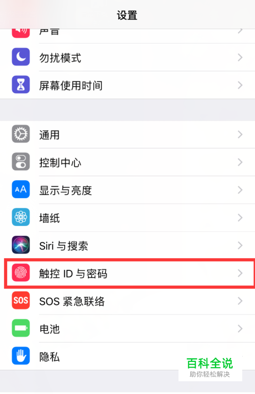 在其中找到并打开【触控ID与密码】