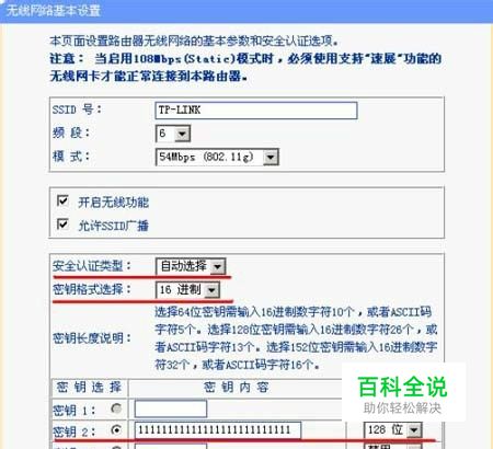 一、配置无线路由器 1、启用WEP加密。打开电脑浏览器,在浏览器的地址栏输入127.0.0.1,打开路由器管理界面,接着依次打开“无线设置”->“基本设置”,弹出“无线网络基本设置”界面,在“安全认证类型”选择“自动选择”, “密钥格式选择”选择“16进制”即可,“密钥选择”必须填入“密钥2”的位置,不这样设置的话可能会连接不上。密钥类型选择128位即可,在本例中密匙我们填入了26位参数11111111111111111111111111 。设置完记后点“保存”按钮,如图: