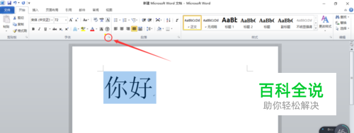 首先我们打开Word2010文档,进入页面,鼠标选择文本(以文本:“你好”为例)后,点击字体选项右下角红色圆圈圈出的部分