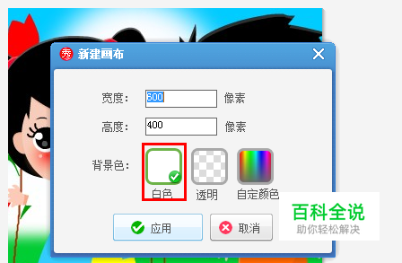 然后点击一下新建,在背景色中,我们选择一下白色的,之后就是应用。