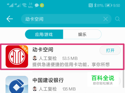 打开手机的应用商店,输入中信银行信用卡APP“动卡空间”进行下载安装。
