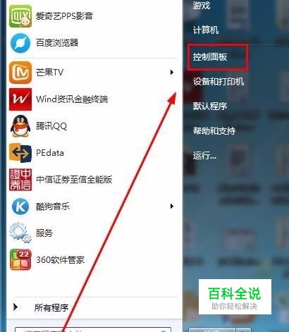 点击电脑左下角,打开开始菜单中的“控制面板”。