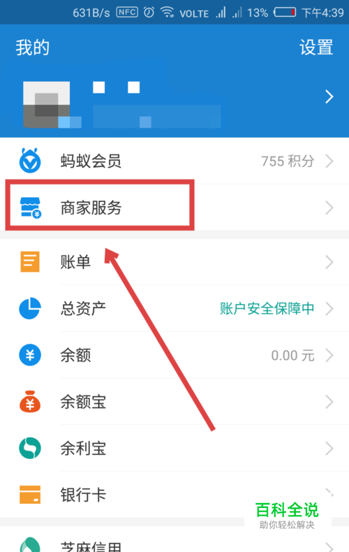 首先我们打开支付宝,在支付宝里找到【商家服务】,点击进入。
