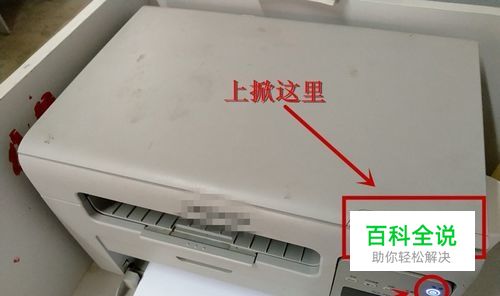给打印机通电,按电源按钮。打开打印机上盖,找到扫描仪玻璃面板。