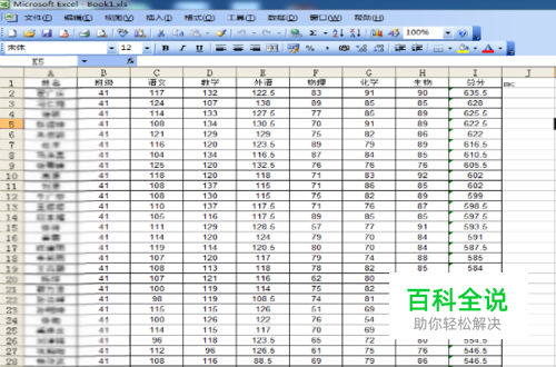 要对学生考试成绩按照总分进行排名,打开一个工作薄,找到成绩表,找到要生成名次的第一个单元格单击选中。