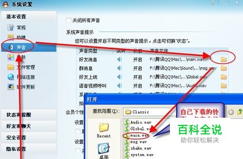 选择你要修改的QQ铃声,打开文件夹,查看QQ声音根目录,(记得先把你下载的铃声放在根目录里),选择你的铃声,最后确定