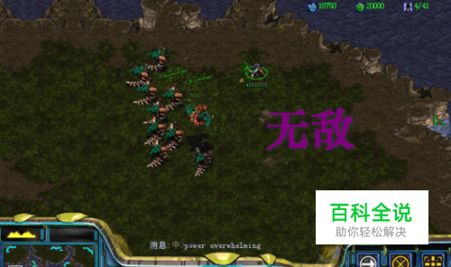 [无敌] 按“回车”,调出聊天输入框,输入“power overwhelming”后,回车。 进入游戏,首要的就是要启动它。让电脑随便的发展吧,再强大也不怕了。 无敌启动了,欺负电脑太无趣,再输入一遍秘籍,回车。哈哈,被电脑欺负了。
