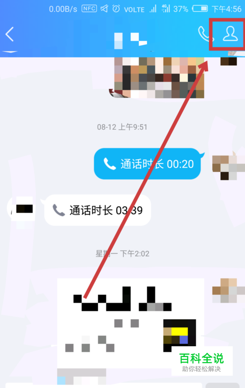 首先我们需要打开你和那个人的对话框,然后点击界面右上角的人物头像的标志,如图所示。