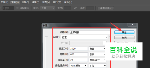 首先第一步就是要清楚全屏海报的尺寸大小,全屏海报的尺寸大小一般是:宽1920PX,高自定义,同常高度设置为400——600PX之间就可以了,太高或太低了都不好看,新建画布1920*600PX,如下图所示