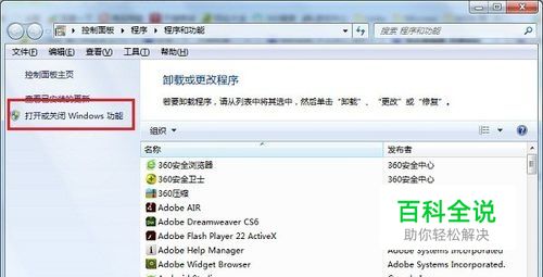 第二步点击“打开或关闭windows功能”,如下图所示: