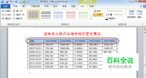 点击菜单“表格工具”、“设计”,如图
