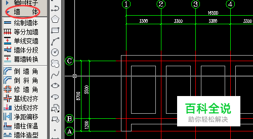 在返回的绘图区域中选择我们要修改墙厚的墙体,在选择时如果是修改大范围的墙体或者全部修改我面可以用框选来选择。