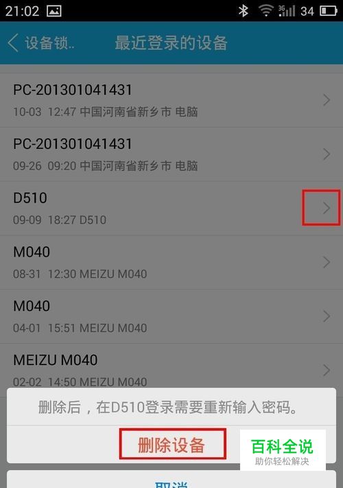 如果想删除登录记录,点击那条记录,然后选择删除设备即可。