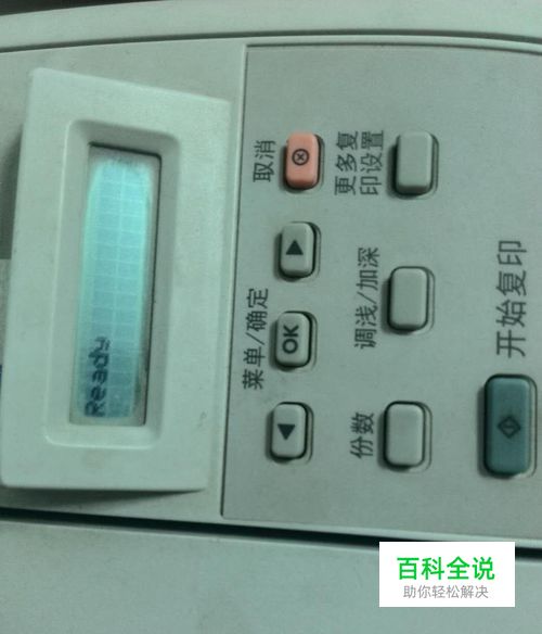在复印机开机状态,显示屏会显示英文“ready”意思大家应该都知道,就是准备好了的意思,这个时候可以选择,面板上的调浅、加深对复印进行颜色的深浅调节,但是这个只是暂时生效,等下次开机就会又回到原来的状态,我教大家怎么从根本上解决这个问题,首先按“ok”键 如图