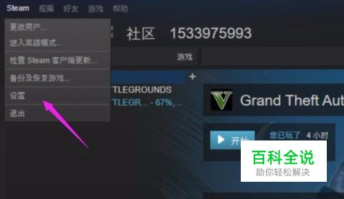 首先,进入steam,进入steam商城页面页面之后打不开提示-102,这个时候,先点击左上方的steam,之后下拉窗口找到设置