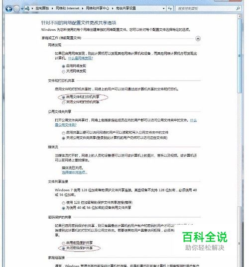 如果以上还是不可以,查看一下家庭组高级共享设置里面的两项是否真正更改,如果服务不开启,及时保存设置也是恢复之前的状态