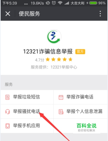 接下来点击12321诈骗信息举报,然后点击举报骚扰电话