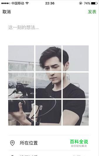 男神的图片就被切成了九张保存到我们的手机相册了,然后当我们发朋友圈,选择这九张照片就可以了。
