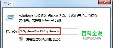 按快捷键“WIN+R”打开运行对话框,输入“%SystemRoot%\system32”,单击“确定”